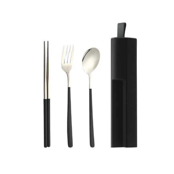 手機支架304不鏽鋼筷子叉子套裝餐具三件套便攜收納盒